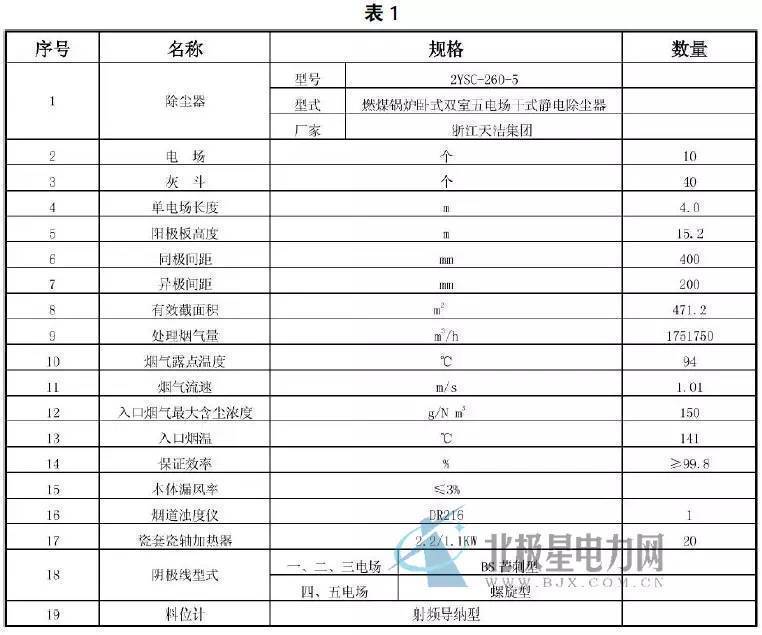 改造前電除塵器性能參數(shù)(見(jiàn)表1)。