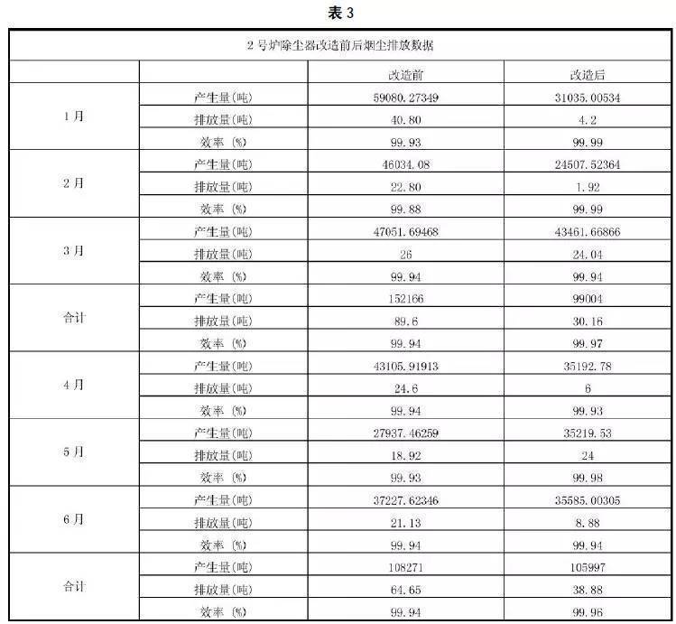 5.1 除塵器改造前堯后的煙塵排放狀況