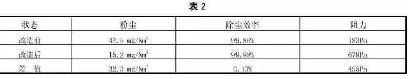 (2)運(yùn)行阻力比純布袋除塵器低500Pa,但比電除塵器阻力高900Pa。