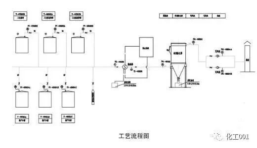 萘結片裝置工業萘槽及液萘發貨產生的含萘廢氣,在引風機的作用下,進入集氣管,集中后經立式換熱器處理,部分液態萘流出換熱系統,收集至萘收集槽集中處理;另外部分萘廢氣通過袋式除塵器捕集凈化,萘被收集后送至萘收集槽集中處理,氣體則通過引風機送入煙囪高空排放(見下圖)。